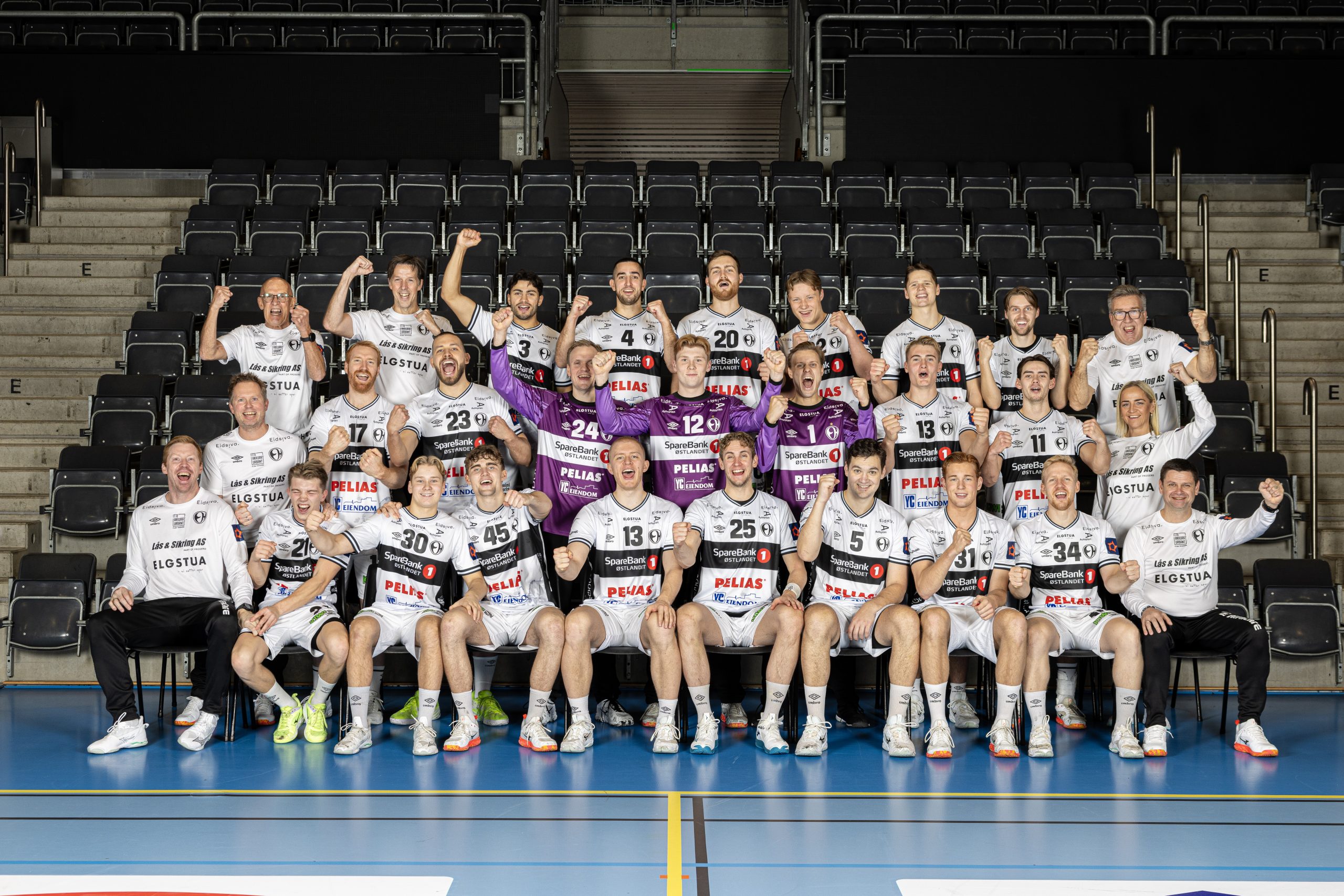 Midterste rekke fra venstre: Børge Lund (hovedtrener), Mathias Rohde Larson, Håkon Bratvold Ekren, Richard Frisk, Vegard Bakken Øien, Simon Mizera, Scott Lucian Wolkoff, Péter Lukács, Sindre Heldal, Guri Midtsundstad (fysioterapeut), Karina Andersen Aas (mental trener)