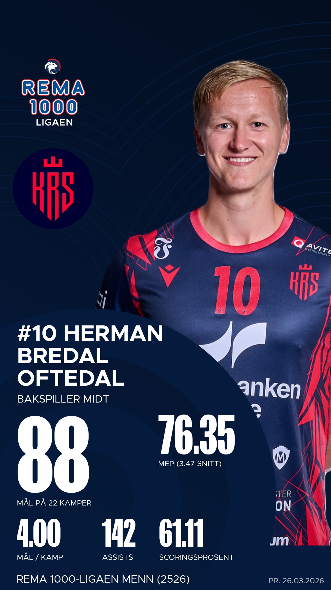 Hos Kristiansand er det særlig tre spillere som har markert seg denne sesongen. Linjespiller Lars Eirik Larsen har vært en bauta på strek med imponerende scoringsform og en fysikk som skaper trøbbel for enhver forsvarsrekke. Bakspiller Herman Bredal Oftedal er lagets motor i angrep, med presise pasninger, gode gjennombrudd og høy fart i kontringsspillet. På høyrekanten har Tollef Oskar Lindqvist levert jevnt og sikkert, med høy uttelling på skuddene og et godt blikk for spillet.
