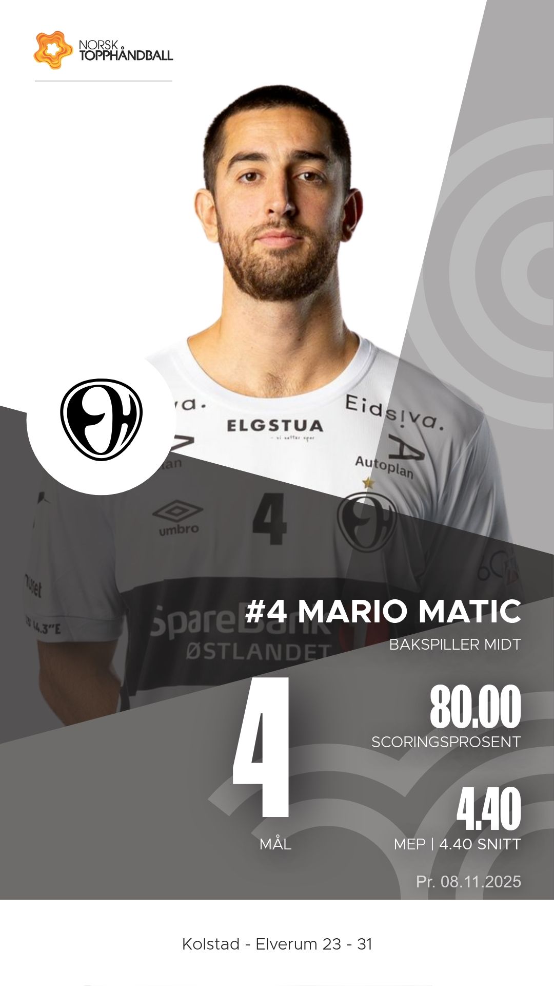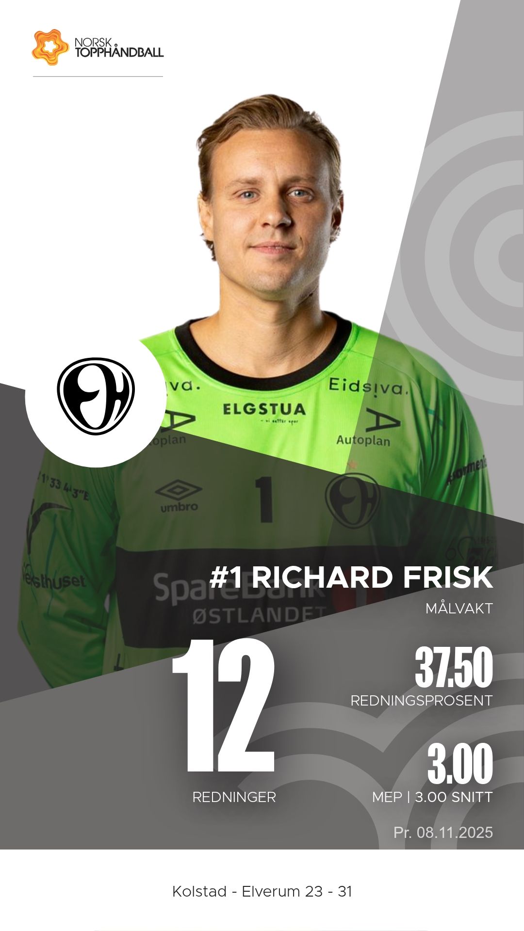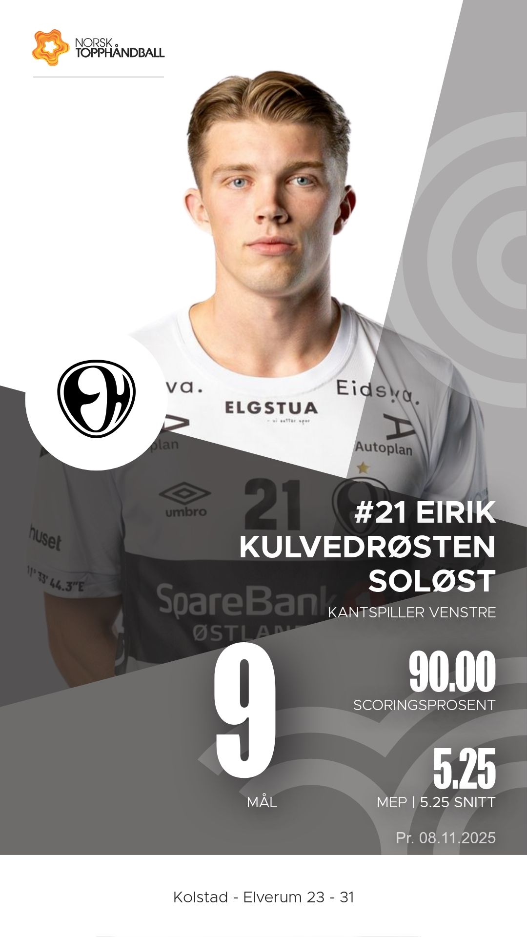 Kolstad og Elverum møttes lørdag 8. november i Kolstad Arena til toppoppgjør i REMA 1000-ligaen 2025/2026. Det endte med en sterk borteseier til Elverum som vant 31–23 etter å ha ledet 14–11 til pause.