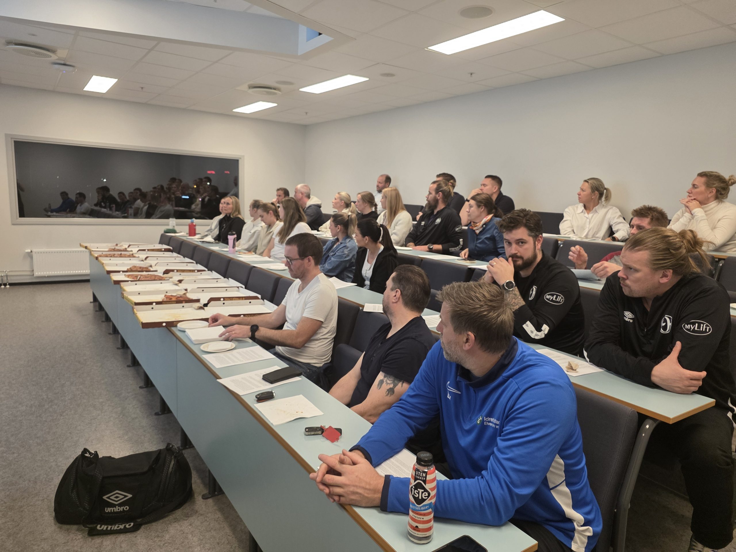 Det ble en lærerik og engasjerende kveld hvor både trenere, J14 og J16 var aktive i hallen. Etter den praktiske delen fulgte en teoridel og pizza i Terningen Arena, før kvelden ble avsluttet med EHF-kampen mot FC Porto.