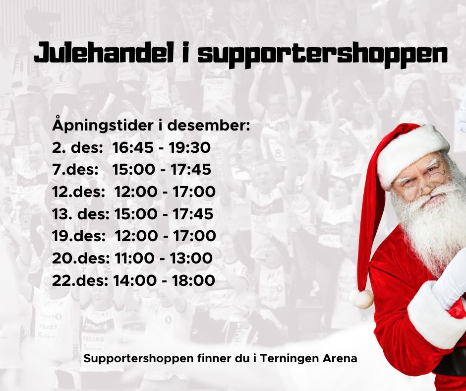 Julen nærmer seg, og vi vet at mange er på jakt etter den perfekte gaven til supportere i alle aldre. Supportershoppen finner du nå i Terningen Arena og den holder åpent på følgende dager i desember: