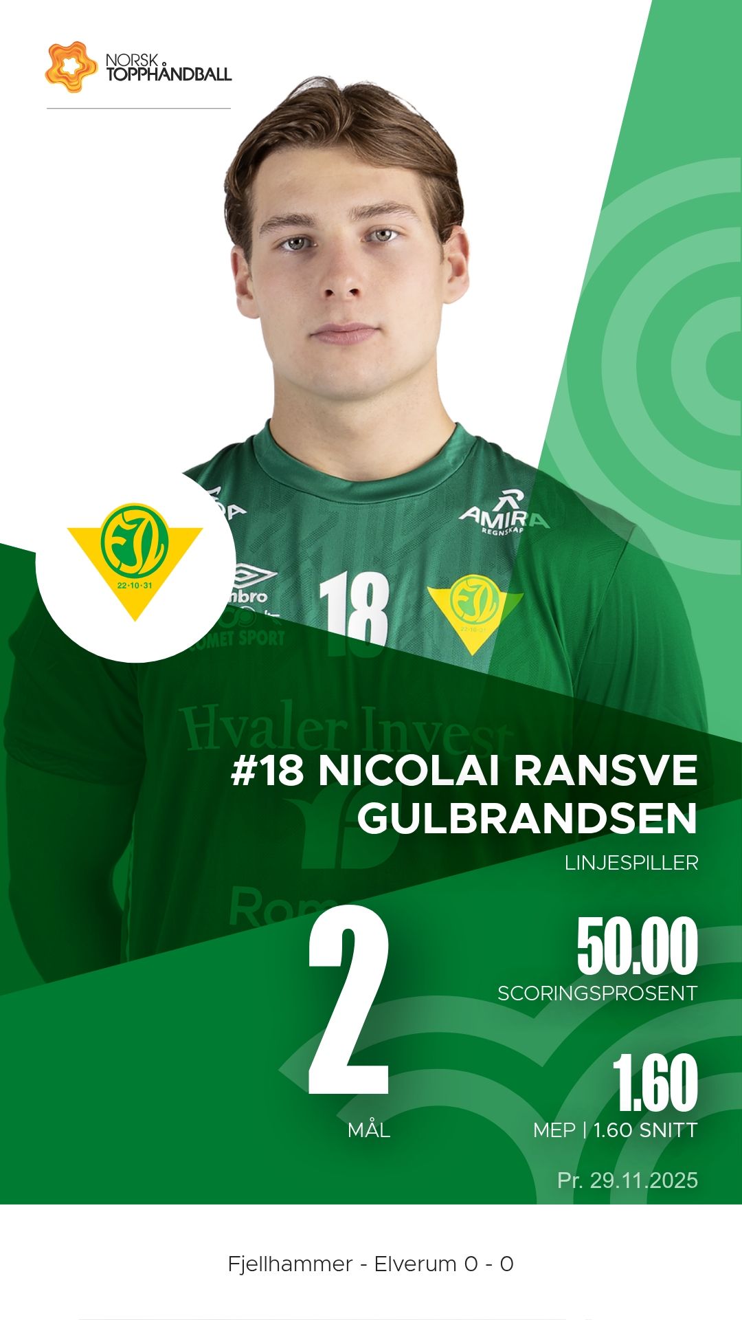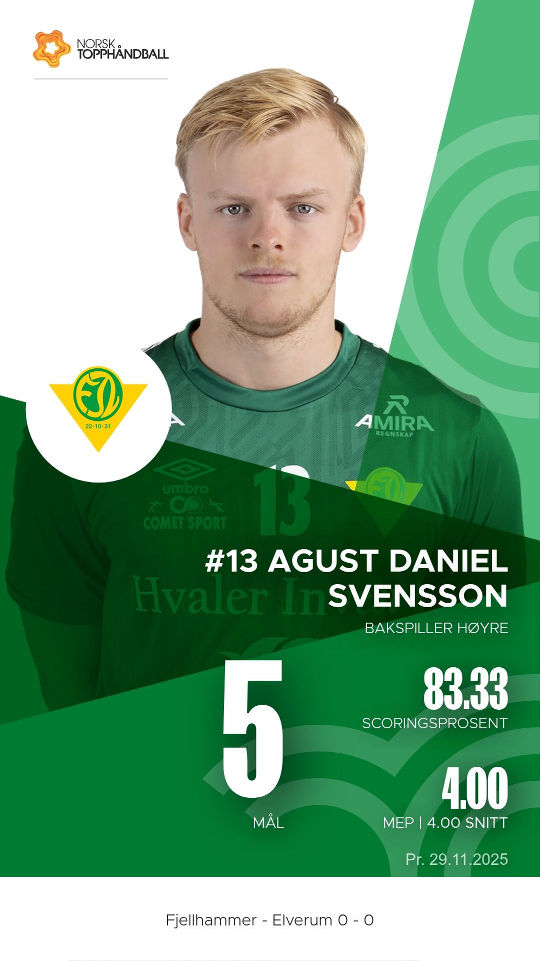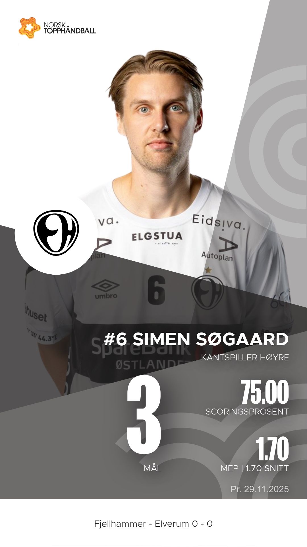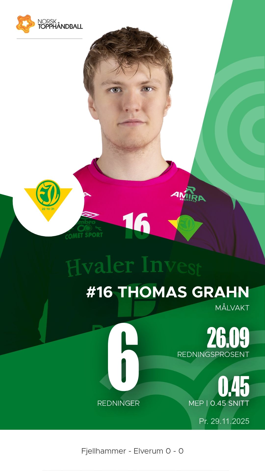 Elverum tok en ny solid borteseier da de slo Fjellhammer i Fjellhamar Arena lørdag 29. november 2025. Kampen i REMA 1000-ligaen sesongen 2025–2026 endte 31–23 til bortelaget etter 16–11 ved pause.