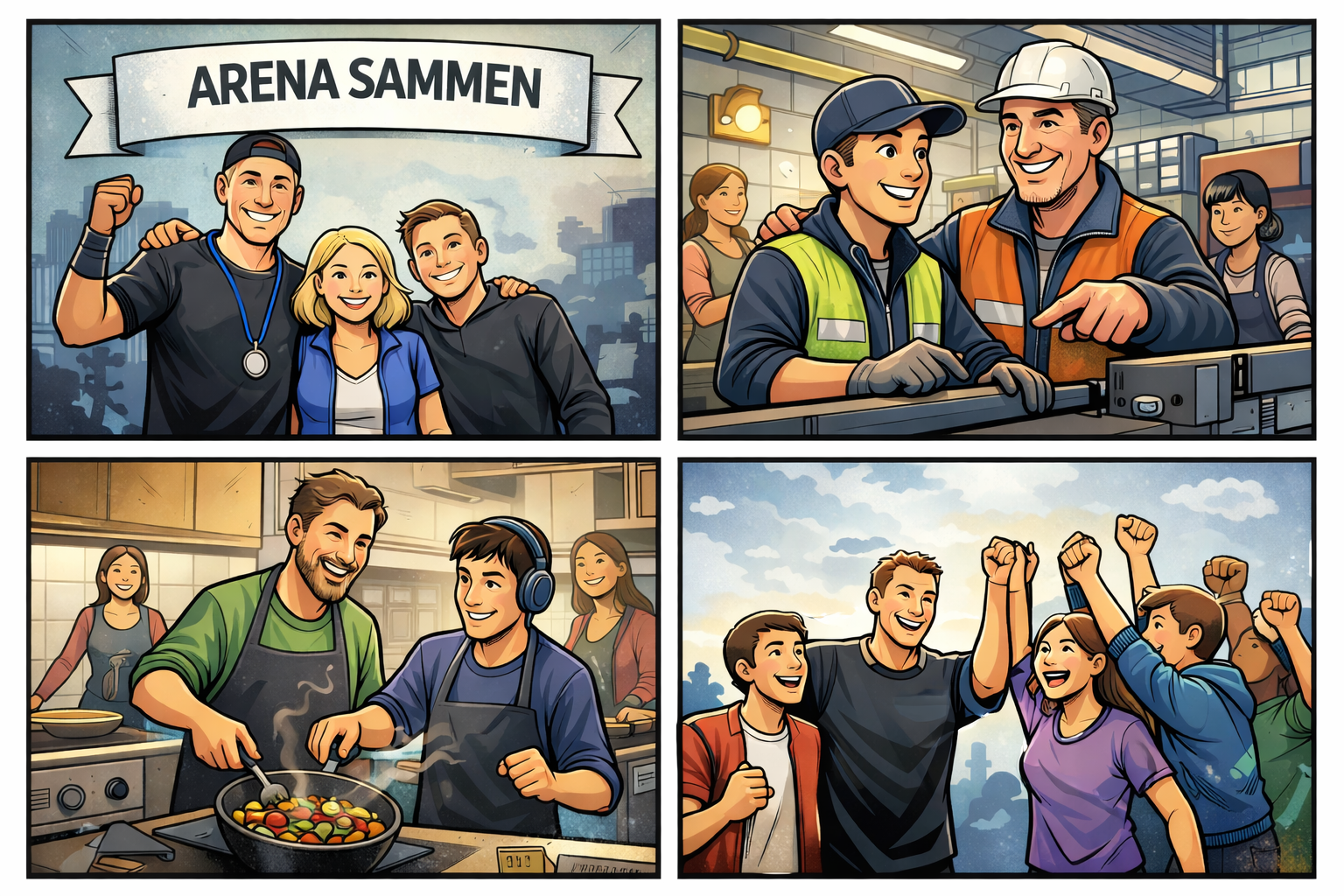 Arena Sammen er et lite samarbeidsprosjekt finansiert av Den europeiske union, med støtte fra Erasmus+ Ungdom. Arena Sammen handler om mer enn arbeid. Det handler om mestring, medvirkning og fellesskap – og om hvordan idrettens verdier kan bidra til varig inkludering også utenfor banen.
