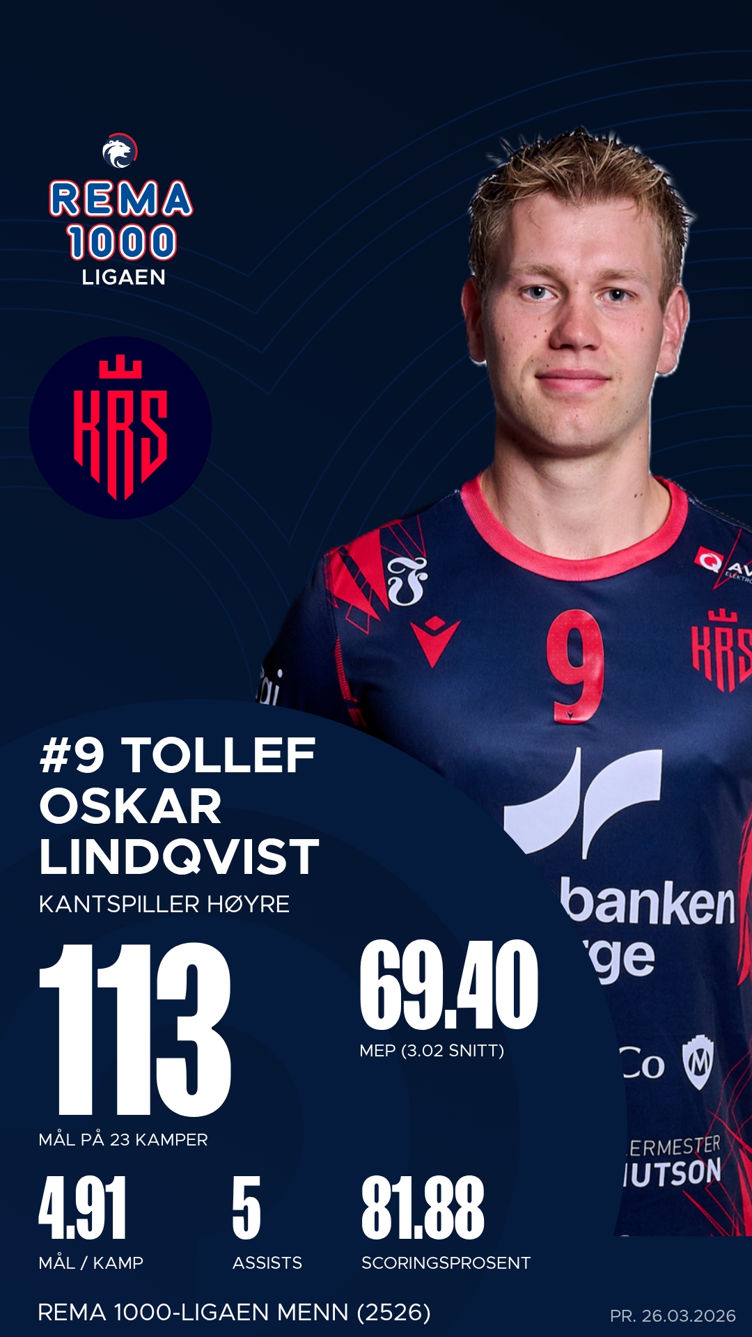 Hos Kristiansand er det særlig tre spillere som har markert seg denne sesongen. Linjespiller Lars Eirik Larsen har vært en bauta på strek med imponerende scoringsform og en fysikk som skaper trøbbel for enhver forsvarsrekke. Bakspiller Herman Bredal Oftedal er lagets motor i angrep, med presise pasninger, gode gjennombrudd og høy fart i kontringsspillet. På høyrekanten har Tollef Oskar Lindqvist levert jevnt og sikkert, med høy uttelling på skuddene og et godt blikk for spillet.